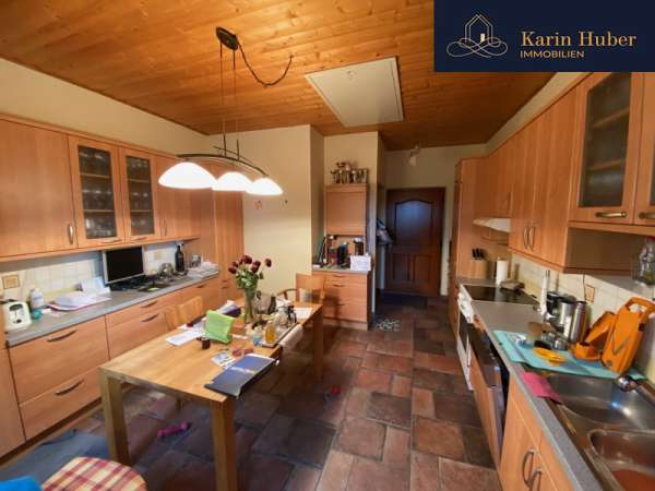 Eingangsbereich mit Küche und Essbereich mit Ausgang in den großen Garten