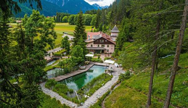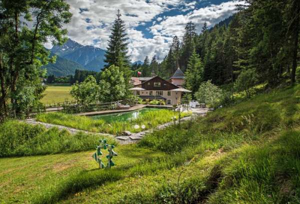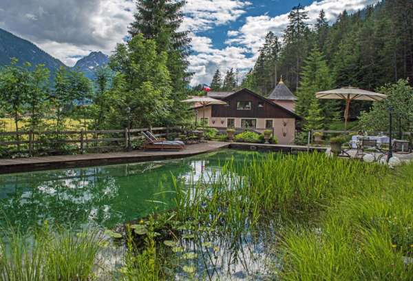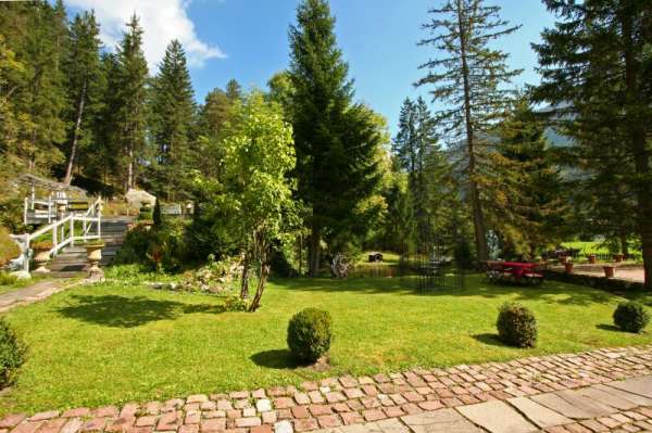 „Wo der Wildbach rauscht“ – so lässt sich das Gesamtensemble mit seiner rund 3.500 m² großen Gartenlandschaft, dem imposanten Haupthaus und seinen Außenanlagen treffend beschreiben. Das Wasser gehört von alters her zu diesem Anwesen; durchquert und umrahmt wird das Grundstück vom einstigen Mühlbach, dem Doserbach und von vier weiteren Wildbächen. Idyllische Ruheplätze sowie ein Schwimmbiotop mit großzügiger Sonnenterrasse, ein Forellenteich sowie urtümliche